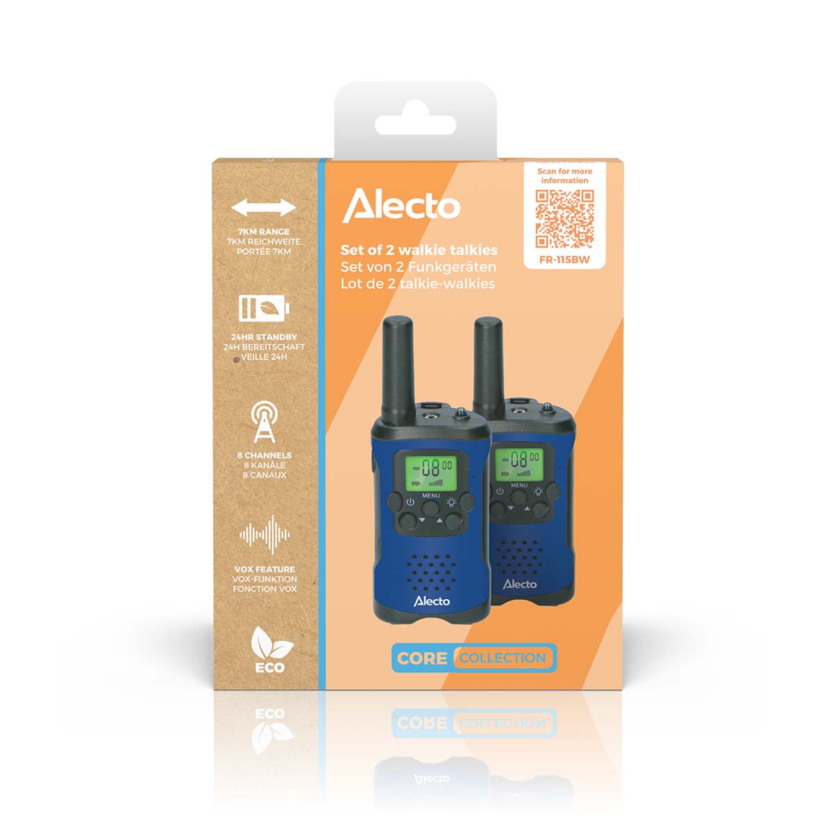 Alecto FR-115BW - Set mit zwei Walkie Talkies für Kinder, Reichweite von bis zu 7 Kilometern, Blau/Schwarz