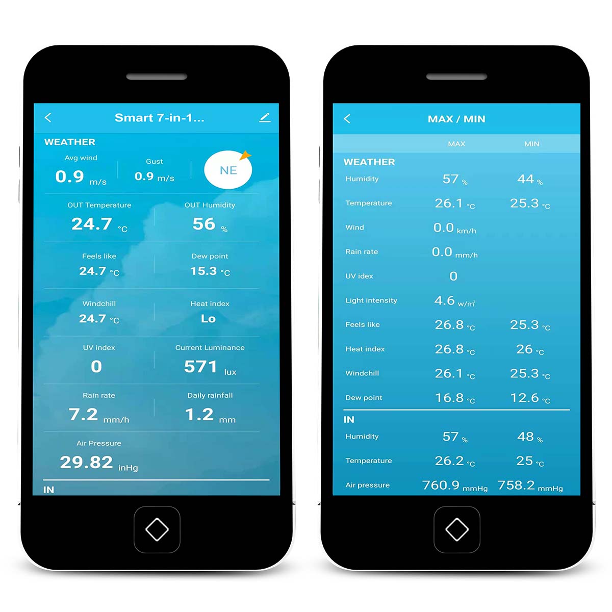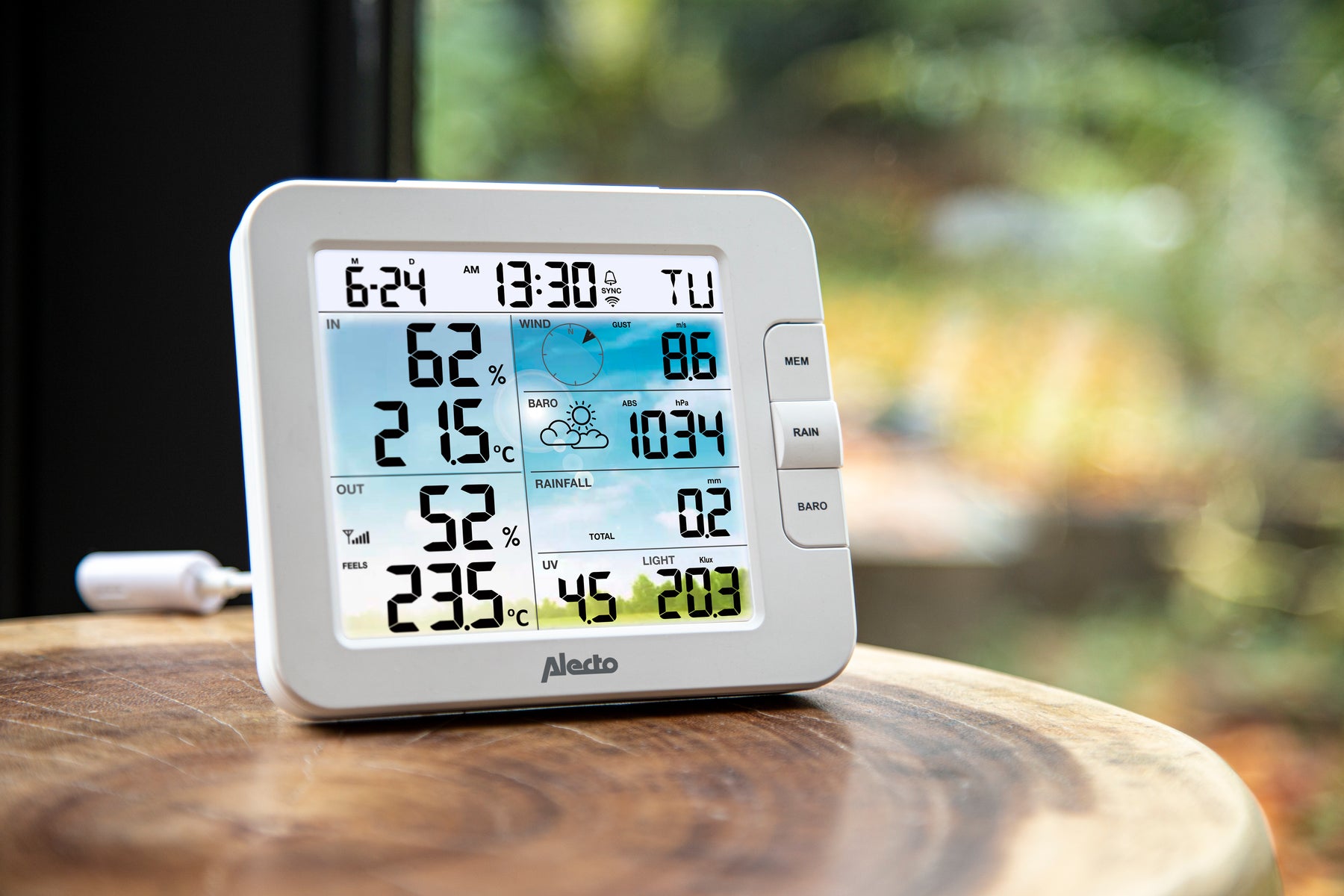 Außer der App steht Ihnen zum Ablesen der aktuellen Wetterdaten auch das attraktive Farbdisplay (Durchmesser 4,8 Zoll / 12,3 cm) zur Verfügung. Die Alecto WS5400 gibt nicht nur die Uhrzeit und das Datum an, sondern auch einen klaren Überblick über historische Daten und erstellt auf der Grundlage all dieser Daten sogar Wettervorhersagen.