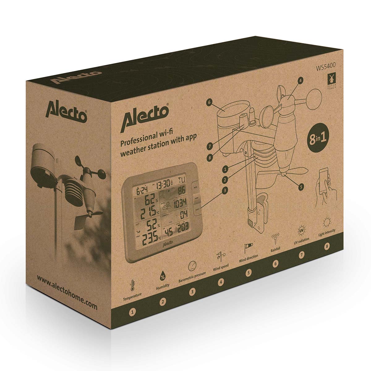 Die Alecto WS5400 ist eine 8-in-1-WLAN-Wetterstation mit Außensensor und App-Steuerung, was sie für professionelle Anwender einfach ideal macht. Die Wetterstation mit Außensensor ist mit einem WLAN-Modul ausgestattet und verfügt im Innen- und Außengerät über nicht weniger als 8 Sensoren. So erhalten Sie einen sofortigen Überblick über die aktuellen, lokalen Wetterbedingungen. Alle Werte können auf dem Farbdisplay und über die Smart Life-App auf Ihrem Handy oder Tablet abgelesen werden. Mit der Smart Life-App können Sie auch zahlreiche andere intelligente Produkte koppeln. Sorgen Sie dafür, dass diese Smart Devices in automatisierten Szenarien zusammenarbeiten.