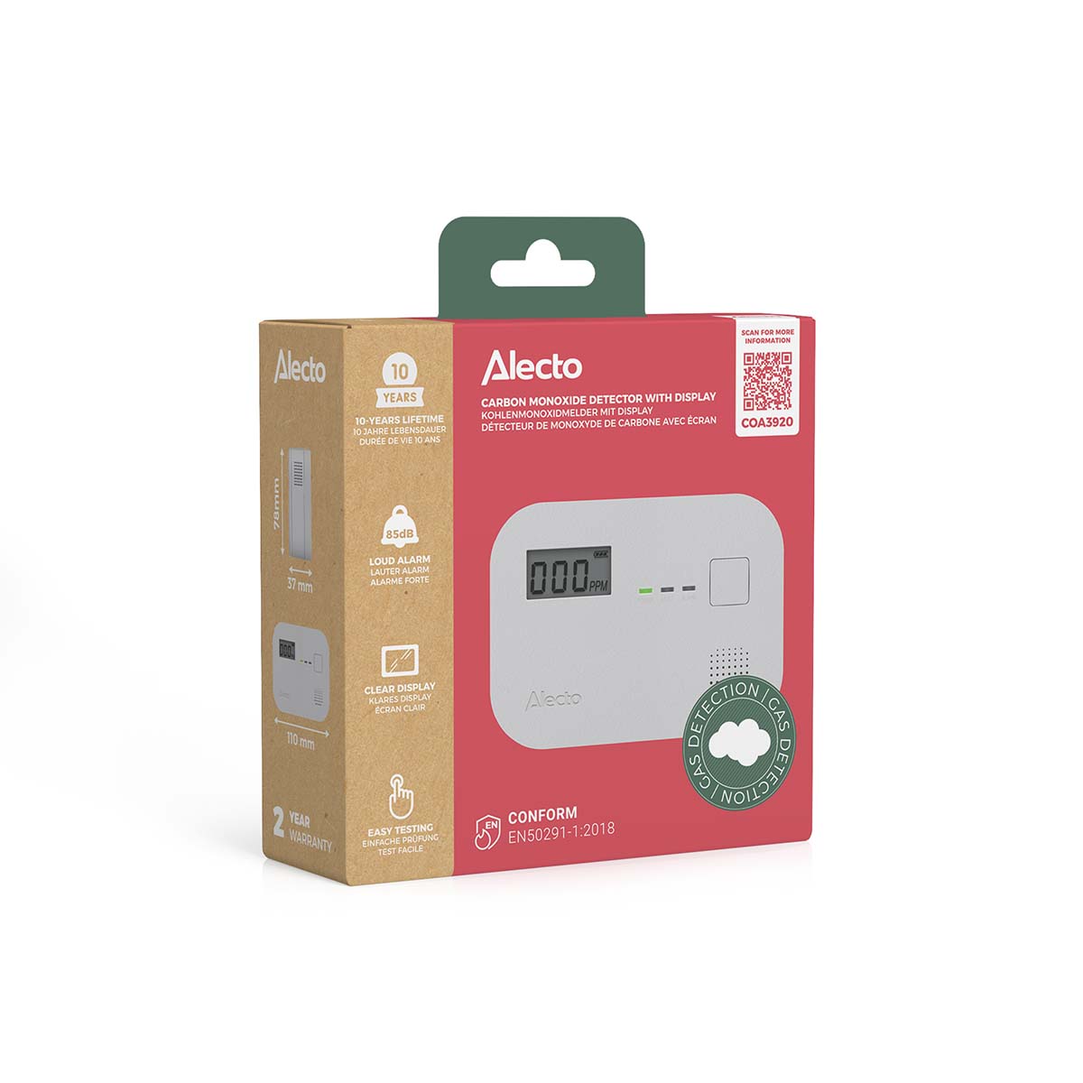 Wie alle Kohlenmonoxid-Melder von Alecto ist auch dieser von höchster Qualität und erfüllt die Europäische Norm (EN50291-1:2018). Der Alecto COA3920 verfügt über eine Testtaste, mit der Sie in regelmäßigen Abständen prüfen können, ob der Kohlenmonoxid-Melder noch ordnungsgemäß funktioniert. Mit diesem praktischen CO-Melder müssen Sie sich keine Sorgen mehr über Kohlenmonoxid machen!
