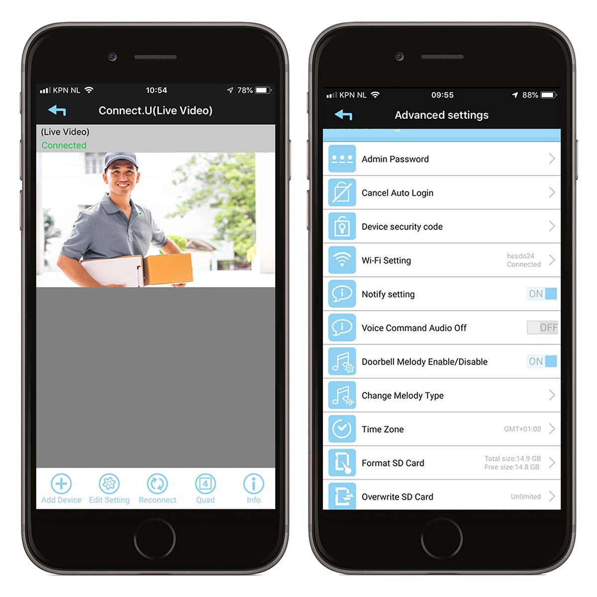 Die Türklingel wird auch mit einer Innenklingel geliefert, an die Sie eine SD-Karte (bis zu 32 GB) anschließen können. Auf dieser Innenklingel können Sie alle Videobilder sicher speichern, sodass niemand außerhalb des Hauses Zugriff auf diese Bilder hat. Der Speicherplatz ist kostenlos, es fallen also keine Abos oder sonstige Kosten an.