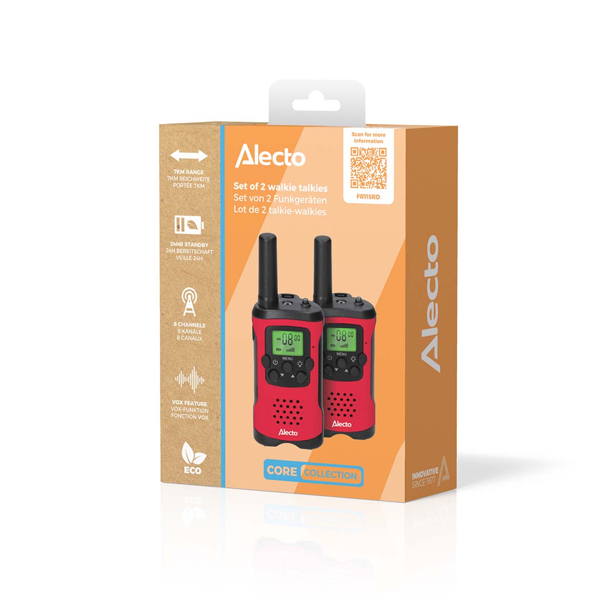 Alecto FR115RD - Set mit 2 Walkie Talkies für Kinder, Reichweite von bis zu 7 Kilometern, Rot/Schwarz