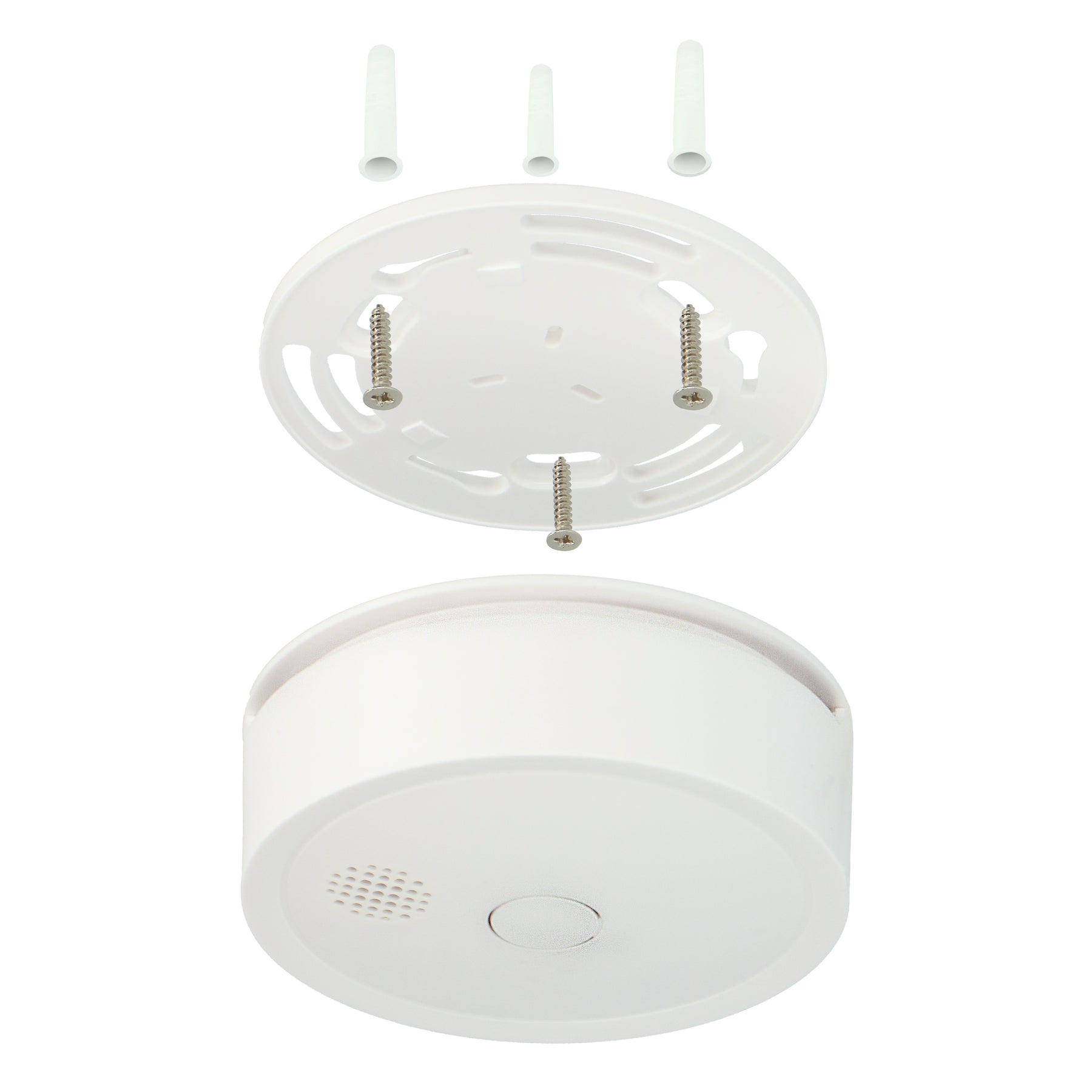 Montieren Sie diese Rauchmelder einfach an der Decke mit dem mitgelieferten Montagematerial. Eine separate Bodenplatte für eine einfache und schnelle Montage, Schrauben und Dübel sind enthalten. Wenn Sie es noch einfacher möchten, ohne Bohren, verwenden Sie die optionalen magnetischen Montagesets (Typnummer MK-2).