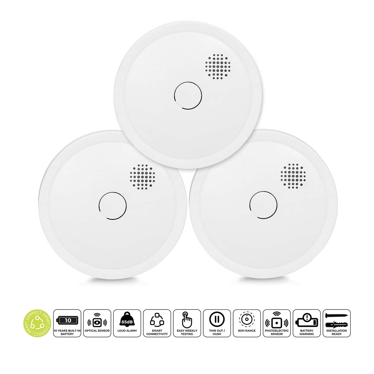 - Set aus 3 drahtlos koppelbaren Rauchmeldern